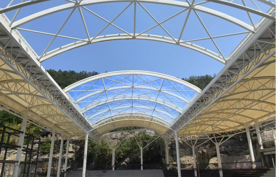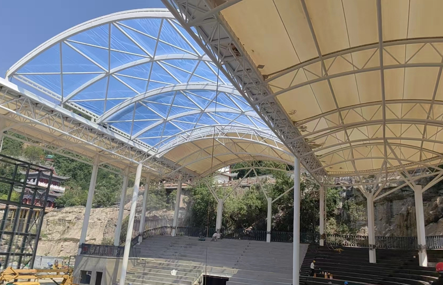 嵐皋村BA籃球場(chǎng)膜結(jié)構(gòu)屋頂工程進(jìn)展